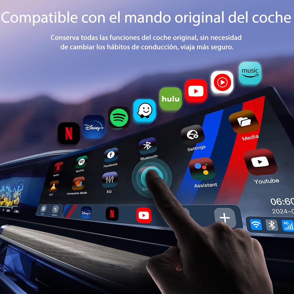 - Integración de Apps: Utiliza tus apps favoritas de navegación, música y comunicación en la pantalla de tu coche para una conducción más segura y cómoda.