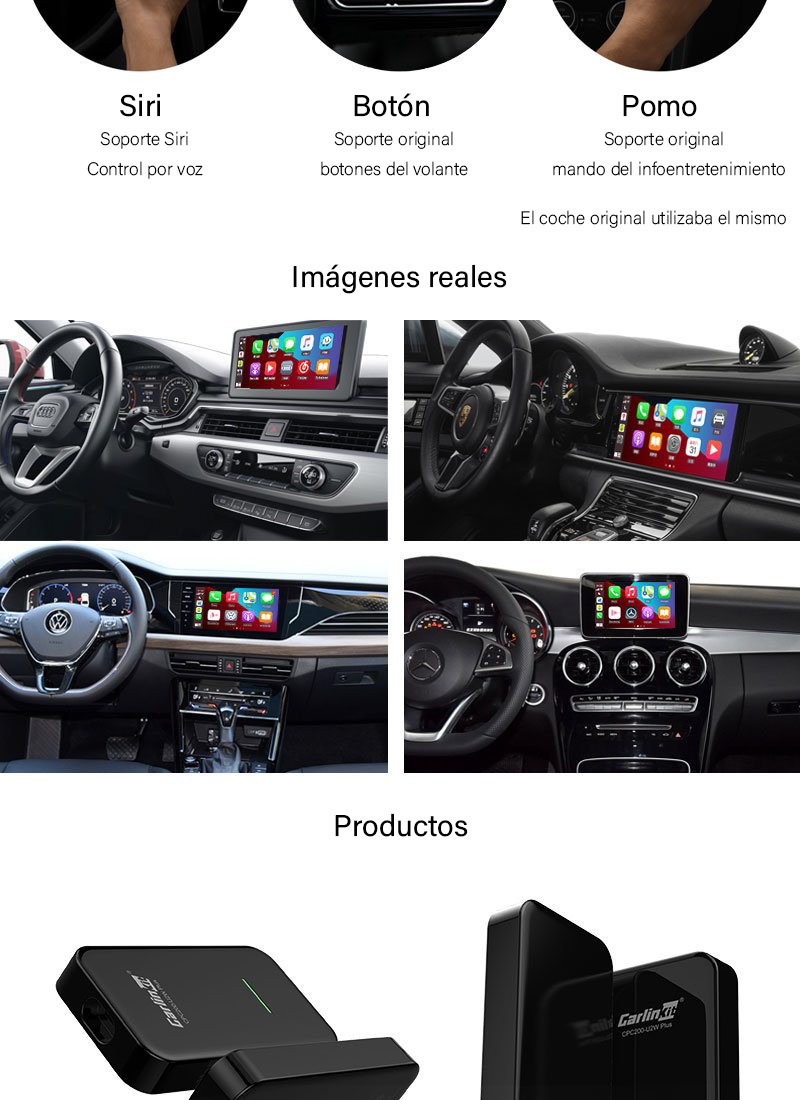 - Función Principal: Disfrute De La Conexión Automática E Inalámbrica A CarPlay Sin Necesidad De Un Cable USB. Eche Un Vistazo A Esta Sencilla Manera De Adaptar Su Sistema CarPlay Existente Para Convertirlo En Inalámbrico. CarPlay Inalámbrico Facilita La Reproducción De Música, La Navegación Por Voz De Google O El Uso De Siri ¡Sin Cables!